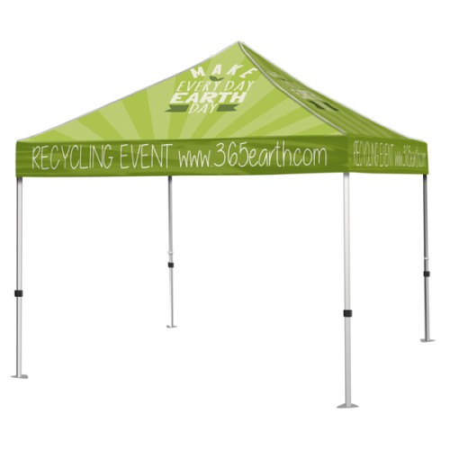 Notre tente pour événements 10x10 est facilement configurable pour rencontrer vos exigences en matière de présentation de votre marque.  Tous les graphiques sont imprimés haute résolution par sublimation sur un tissus hydrofuge à l'épreuve des égratignures.  Les 4 panneaux formant le toit peuvent contenir des visuels diffétents, donc vous imprimer ce que vous voulez où vous le voulez!  4 piquets d'ancrage au sol et cordes sont inclus, malgré que nous recommandons des sacs de sable ou des blocs de ciment pour les journées avec de forts vents .  La structure est fabriqué d'un aluminium résistant 40 mm de forme hexagonale, avec des jambes téléscopiques vous permettant de fixer la hauteur désirée.