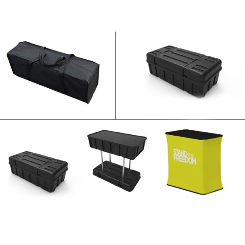 Dans l'éventualité que vous choisissez le podium celui-ci vous sert de bac de rangement pour votre présentoir et ne recevrez que celui-ci avec votre commande.